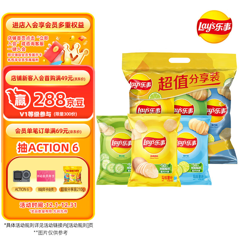 包邮 乐事(Lay's)薯片(原味+红烩味+烧烤味)70g*3包 超值分享装 零食大礼包